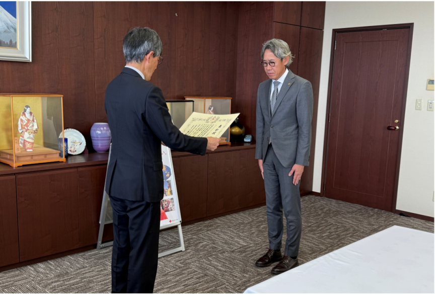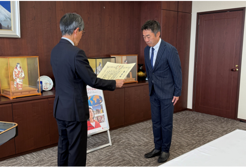 2025年12月10日に、日本赤十字社 三重県支部さまへトヨタカローラ三重グループ4社より寄付金を贈呈させていただきました。